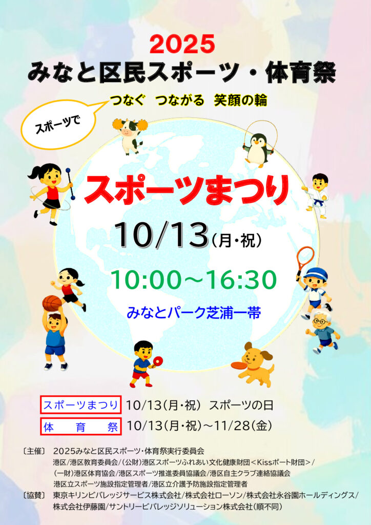 毎年恒例となりました【みなと区民スポーツ体育祭】が今年も開催されます。