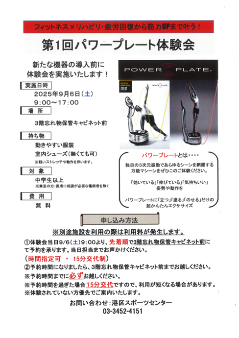 【港区スポーツセンター】第一回パワープレート体験会開催のお知らせ
