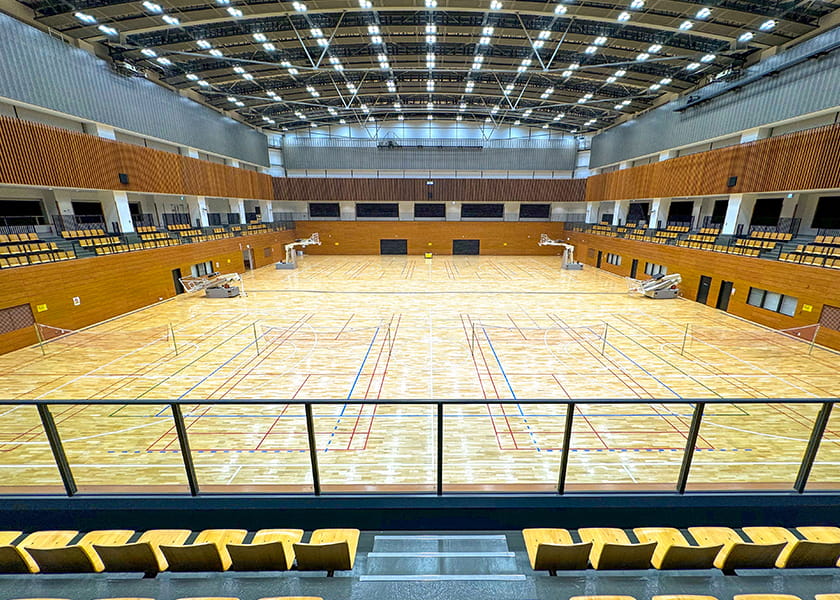 光に包まれた広々としたアリーナは、様々な競技スポーツで利用できます。