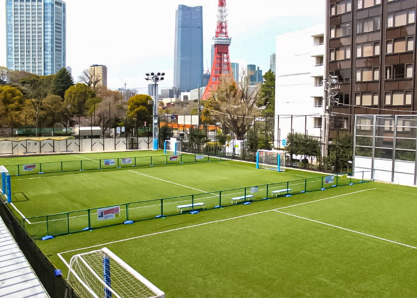 - ・人工芝生保護のため、コート内でのスパイク使用はできません。また、サンダルや革靴の使用もできません。運動靴またはフットサル用シューズをご利用ください。